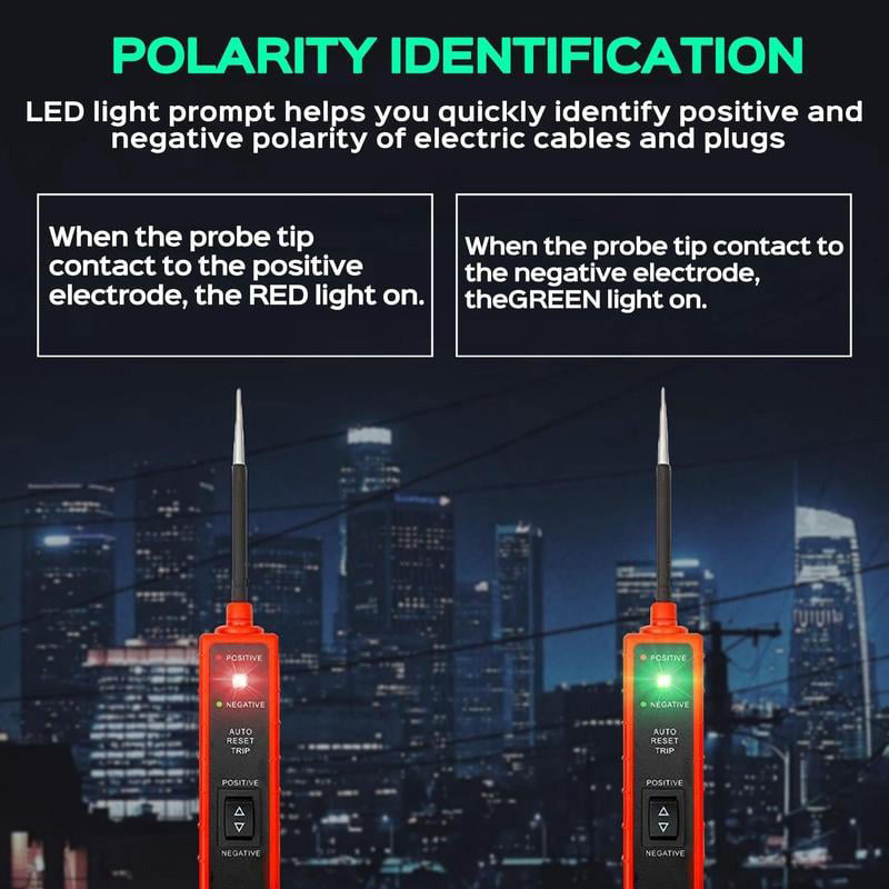 POLARITY TEST - This power circuit probe tester swiftly identifies cable polarity. The LED indicator shows red for positive and green for negative poles, making it easy to verify connections and ensure correct wiring in your vehicle.