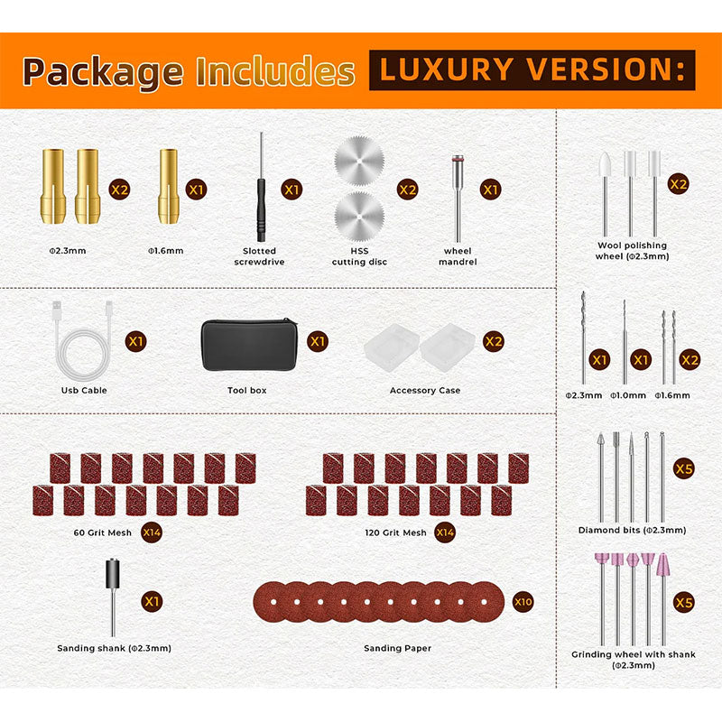 COMPACT LIGHTWEIGHT - The cordless rotary tool is small and lightweight but powerful, when you use it it's like holding a pen for ultimate control and precision as well as comfort. Note: Different tool attachments are suitable for different collets.