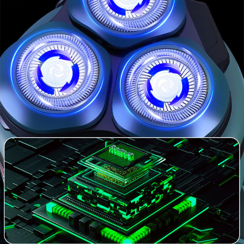 EFFICIENT FLOATING HEADS FOR CLOSED SHAVING - Equipped with 3 double-ring floating electric razor heads made of refined steel material, this electric shaver adjusts to the contours of your face, neck, and jaw for a clean and close shave. The high-speed motor, double-track ultra-thin spherical cutter net, and self-sharpening steel blade ensure a precise and efficient shaving experience.