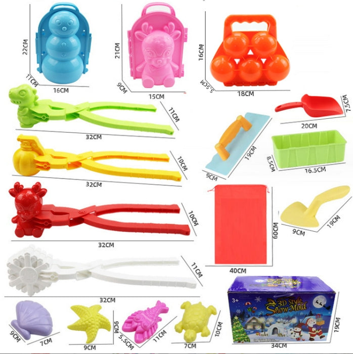 The kit includes a snow duckling maker, a penguin snowman, heart pack as well as a perfect snowball mold. Please note that the colors will be random.