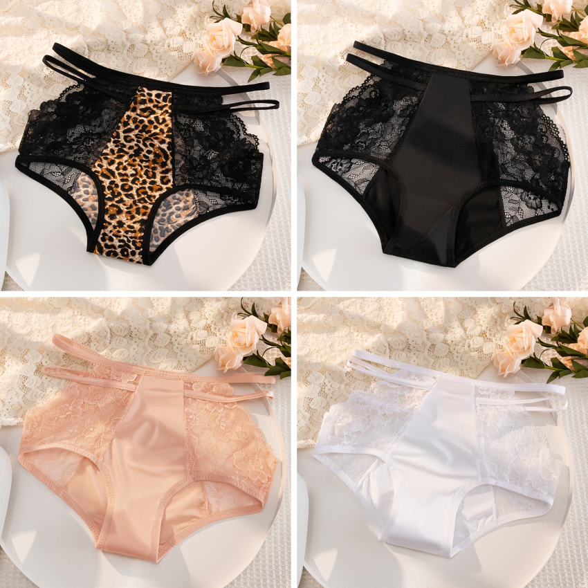 Sexy Seamless Double Strap Lace Silk Care Panties