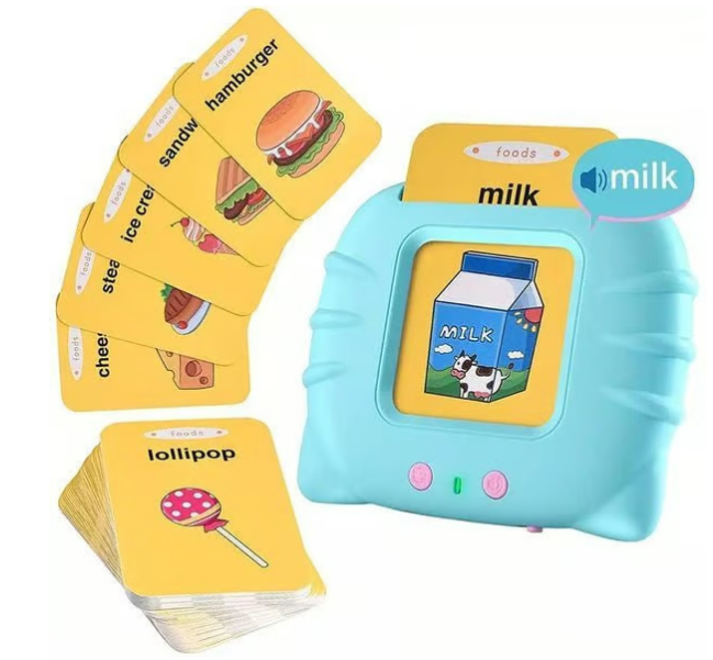 This speech therapy toy includes a card reader and 112 double sided flash cards covering 12 subjects like shapes, colors, animals, daily necessities, transports, food, fruits, vegetables, costumes, nature, persons & jobs. Great learning toy for 2 year olds and up to learn sight words, enhance cognitive ability, exercise hearing and build vocabulary. Great autism sensory toys for autistic children.