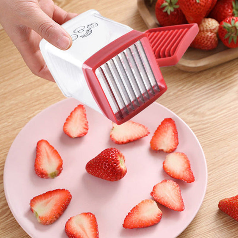 WIDE RANGE OF USES - You can use it to chop fresh vegetables, fruit, and more. The strawberry cutter is easy to use, square shape, and no dead ends for washing.