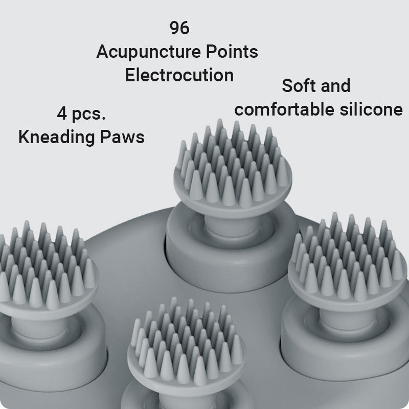 FULL COVERAGE & DEEP STIMULATION: Equipped with four rotating massage claws which features 96 soft silicone touch points, this massager mimics a professional scalp massage. It stimulates acupressure points, improves circulation, and relieves tension, offering a deeply relaxing and revitalizing experience.
