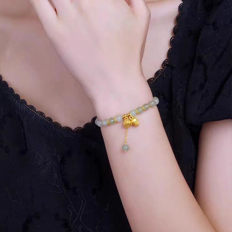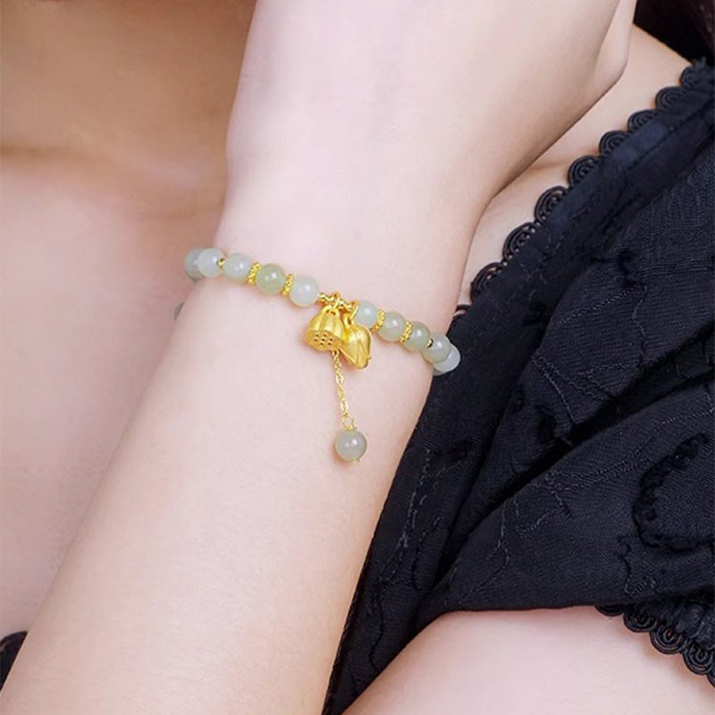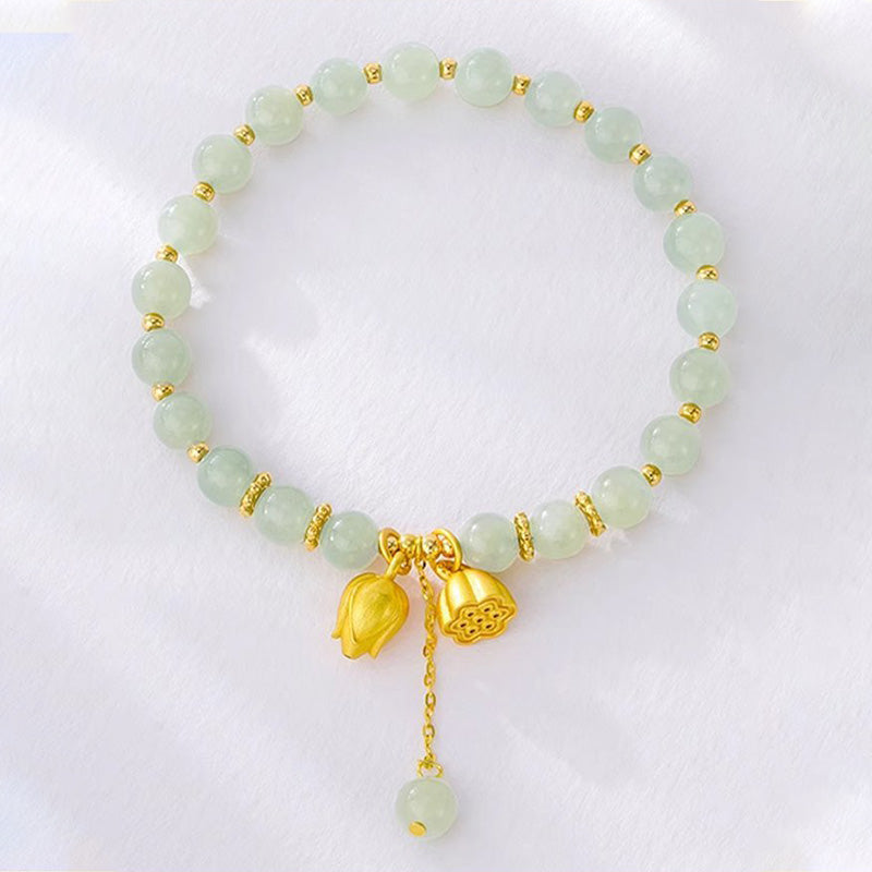 Lotus Flower Pendant Jade Bracelet
