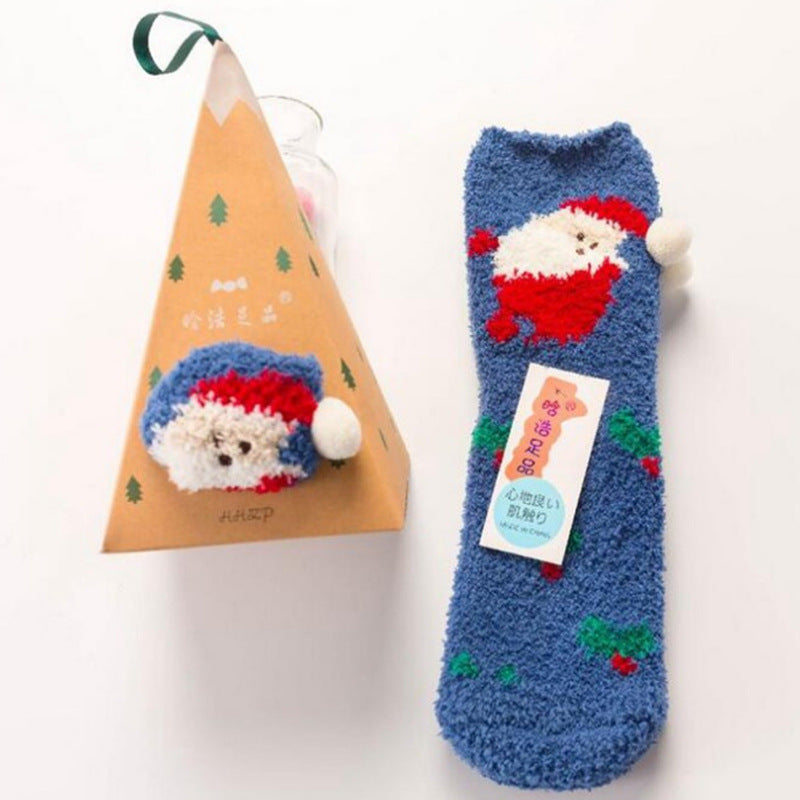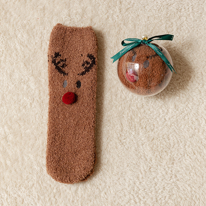 - 1 pair x Cute Christmas Style Socks / 1 x Present Box