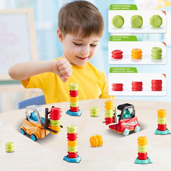 ćTraining Skillsć:Ā Forklift transport game can help children recognise colours and shapes, promote and train children's imagination and creativity, as well as improve their practical skills, thinking and problem solving skills, structural elements and design skills.